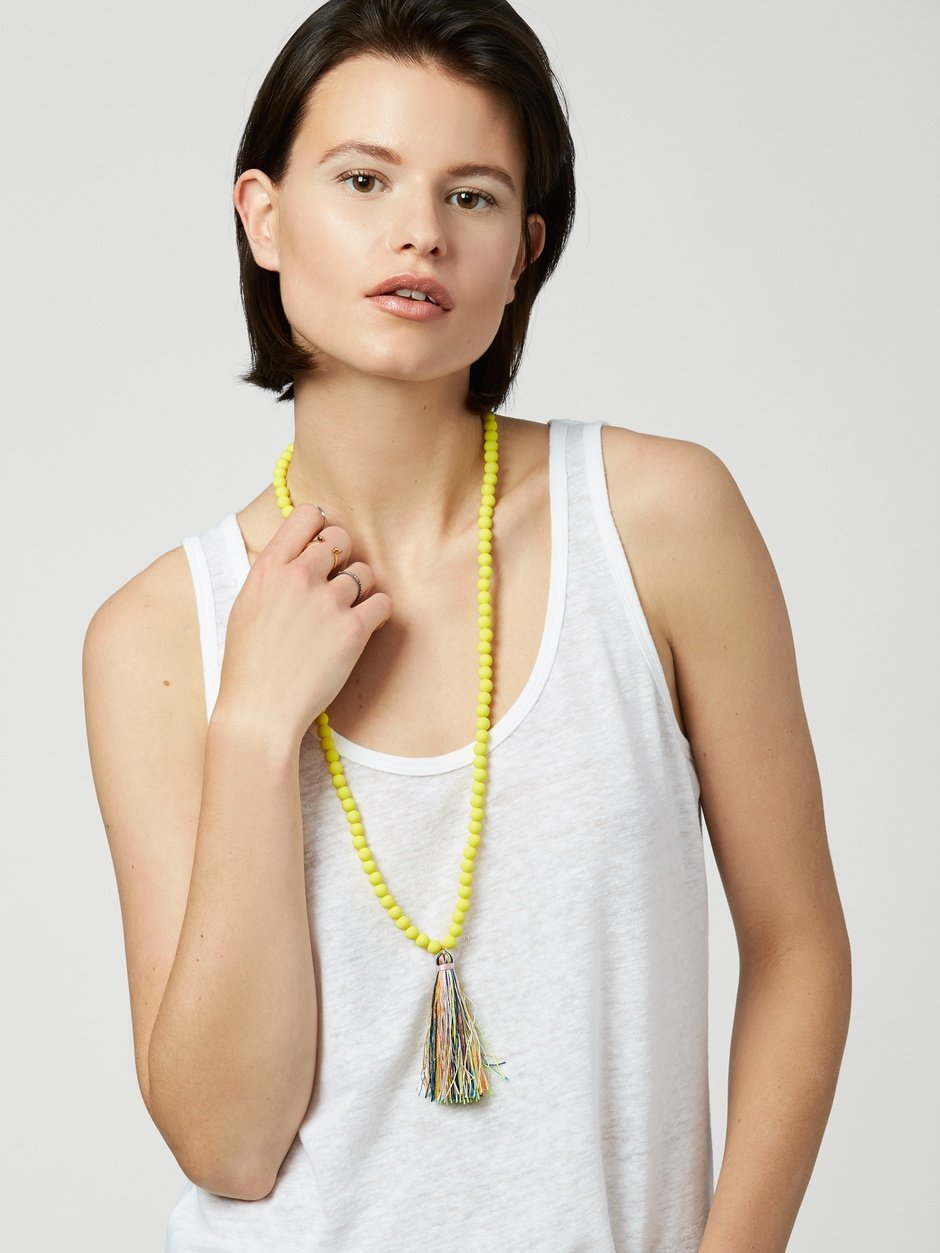 Finally, this beaded tassel trio is an amazing deal at $28 for THREE necklaces. They can be worn as a set or individually. The length looks a tad shorter on the model than the other options above, but still equally adorable.