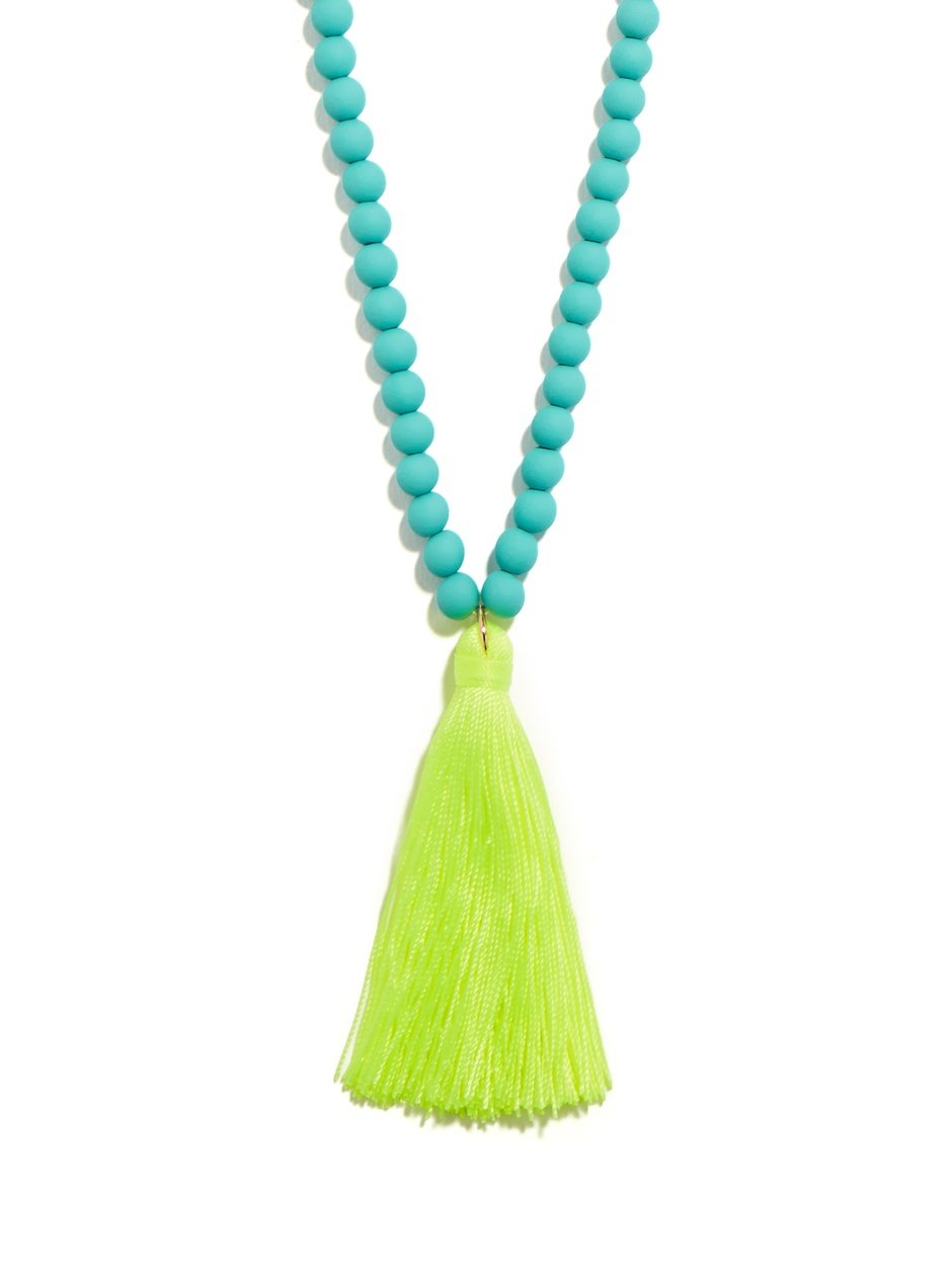 By far, my favorite trend of the summer has been tassels. I don’t know what it is but I just can’t get enough of those little gathered bunches of string. Tassels so much fun and the perfect way to add a pop of color to any outfit. I always gravitate toward long pendant necklaces, I think because they give the illusion I’m taller than I am. I bought a few beaded tassel necklaces in Bali earlier this summer for only a couple bucks each and I’m kicking myself for not purchasing one in every color. #shoppingregrets
