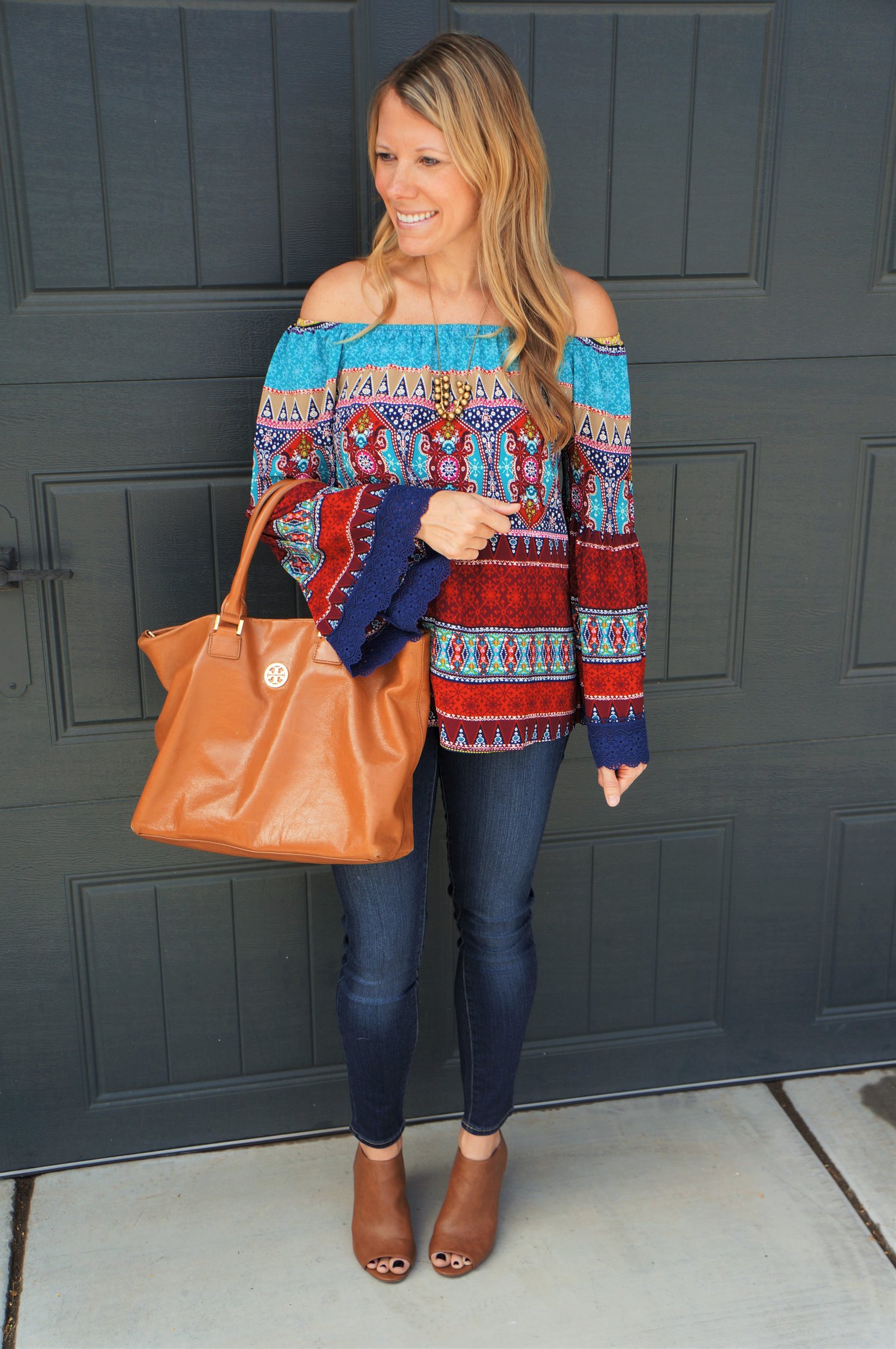 The exact off the shoulder top I’m wearing in the picture at the top of this blog post sadly sold out, but I found this one which is pretty darn similar. I’ve been on a serious Target shopping kick lately and it isn’t going to stop anytime soon. Right now, Target has 20% off all clothes, shoes and accessories, dropping the price down on this cute boho top to $23.99.